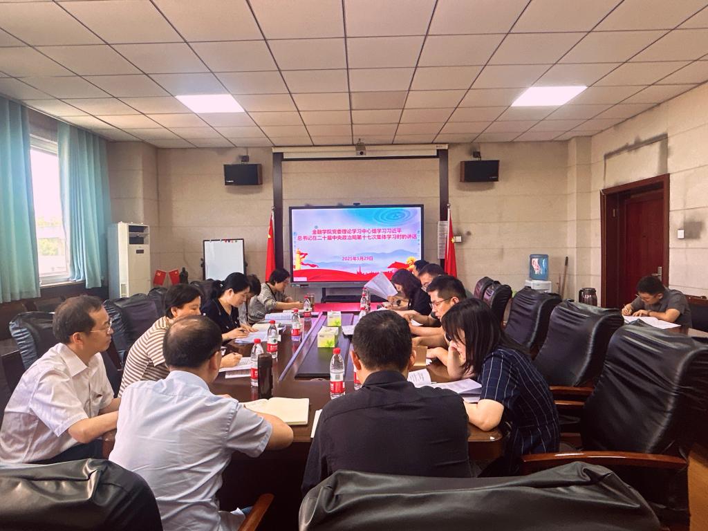 5月29日下午,金融学院党委召开理论学习中心组(扩大)专题学习会,深入学习贯彻习近平总书记《加快建设文化强国》重要讲话精神。学院党委理论学习中心组成员及部分党支部书记参加了学习。学校督导组张艳霞、郑祥华列席督导。