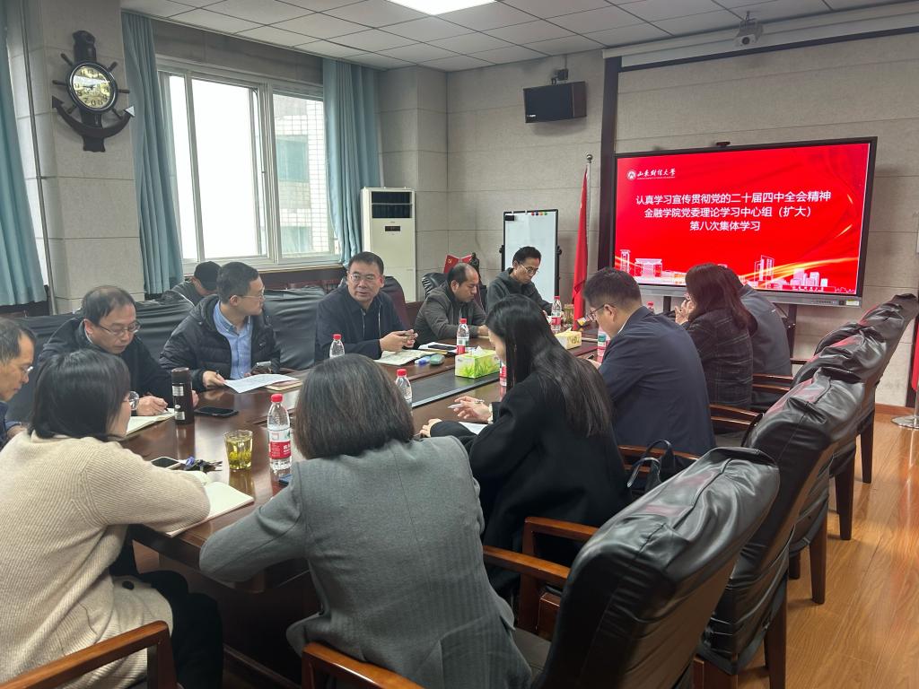 10月29日下午,金融学院党委理论学习中心组召开集中学习(扩大)会,专题学习习近平总书记在党的二十届四中全会上发表的重要讲话和全会通过的《中共中央关于制定国民经济和社会发展第十五个五年规划的建议》,部署贯彻落实工作。会议由金融学院党委书记吴红文主持,党委理论学习中心组成员、各党支部书记参加学习。