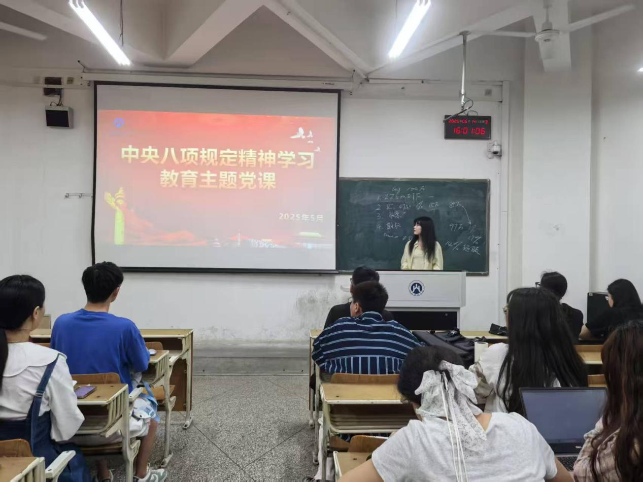 为深入贯彻中央八项规定精神学习教育,持之以恒深化作风建设,全面提升学生党员的理论素养。5月14日,金融学院研究生第三党支部“青语新声”研究生理论学习宣讲团以“中央八项规定精神学习教育”为主题,在金融楼116室开展理论宣讲活动,研究生全体党员、2025年发展对象和积极分子参加。
