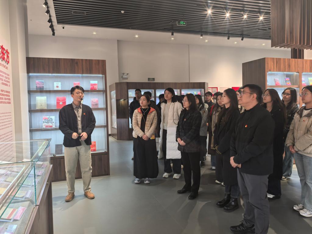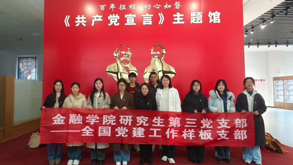 为深入学习贯彻马克思主义思想,强化新党员党性修养,2025年11月26日,山东财经大学金融学院研究生第三党支部党员在学院党委副书记朱翠珍、党委专职组织员邵珠建及辅导员王亚男、王丽、王蕴玮老师的带领下,前往山东交通学院《共产党宣言》主题馆开展主题教育活动,在沉浸式学习中感悟真理光芒,筑牢信仰之基。